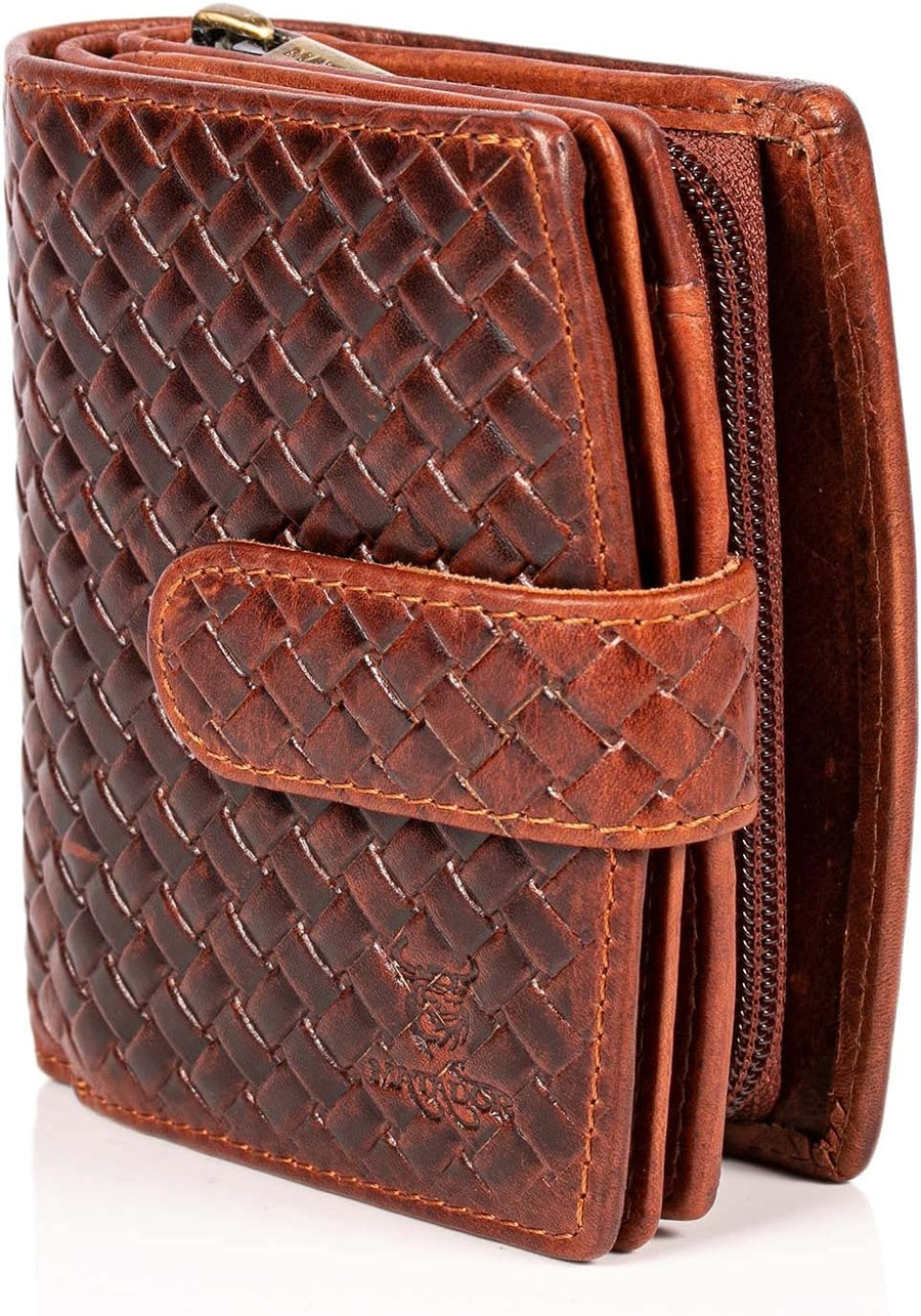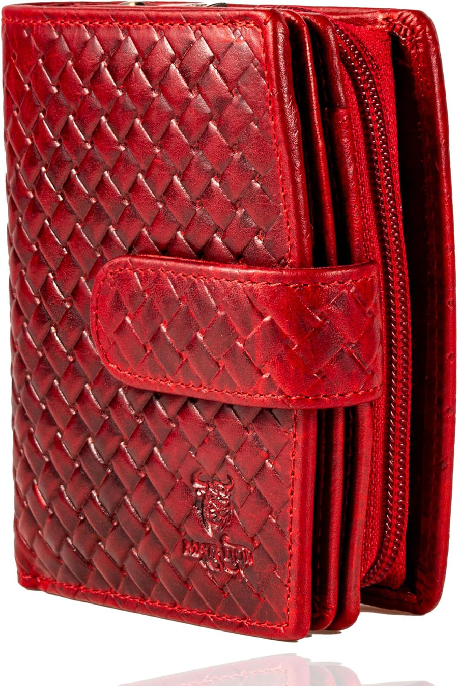 MATADOR Damen Geldbörse aus Echt Leder - TÜV Geprüfter RFID/NFC Schutz - Portemonnaie Flechtprägung