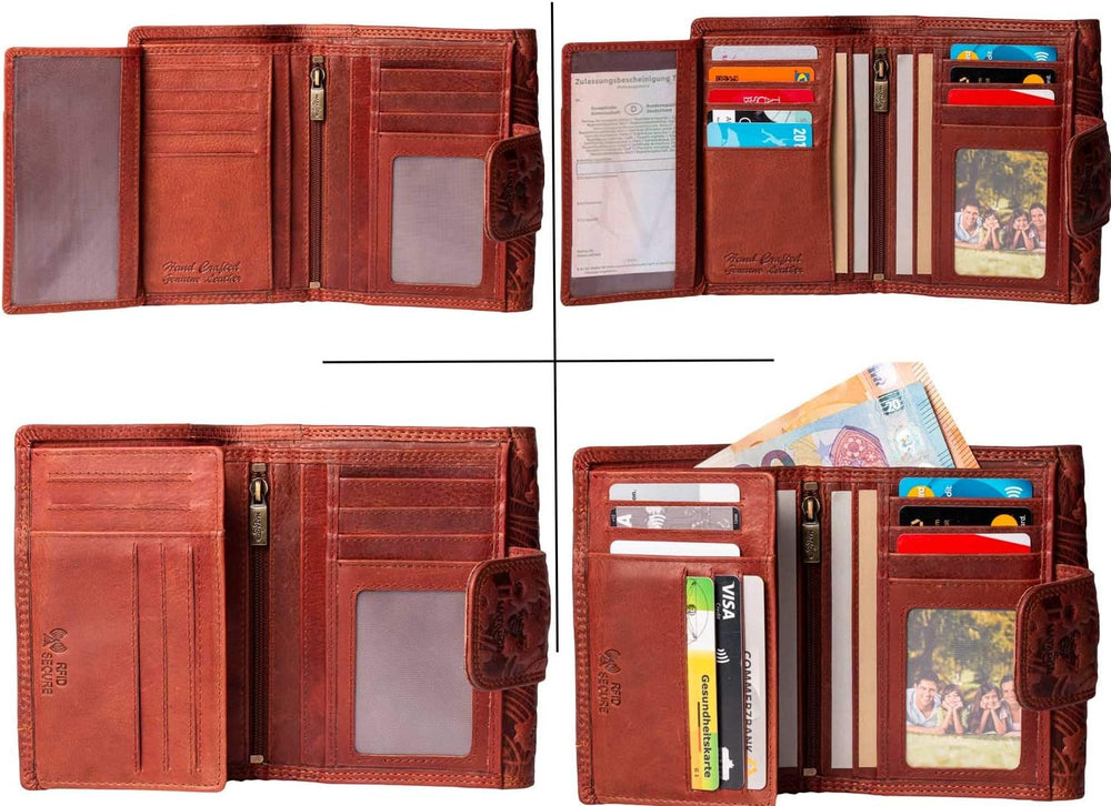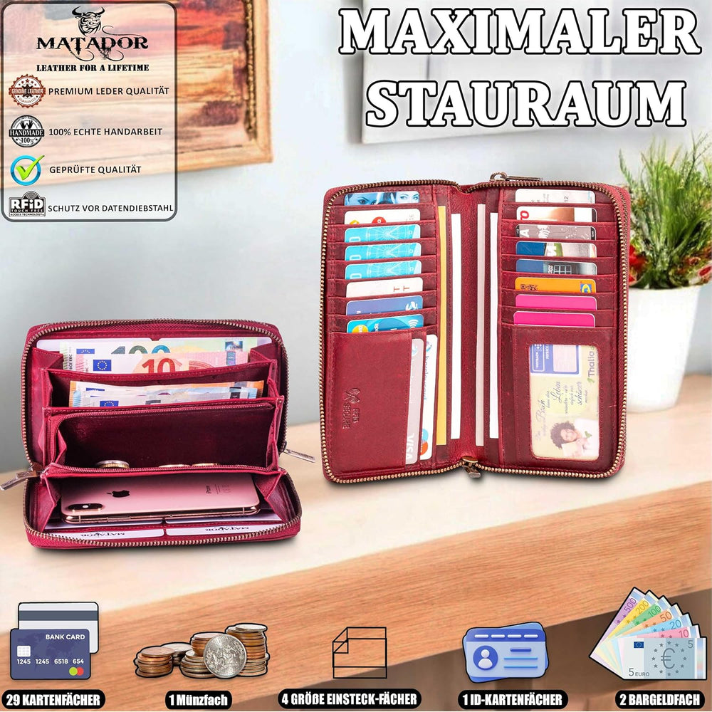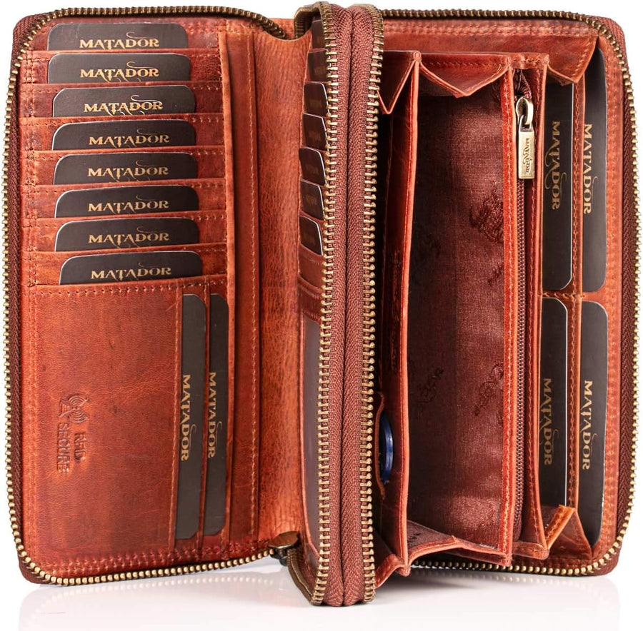 MATADOR Echt Leder Damen Geldbörse Frauen Brieftasche Gross Tüv Geprüfter RFID Schutz 36 Kartenfäche