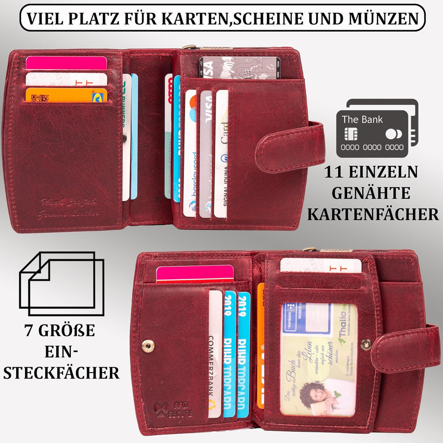 MATADOR Damen Leder Geldbörse TüV geprüfter RFID & NFC Schutz Frauen Portemonnaie Ladies Wallet Red/