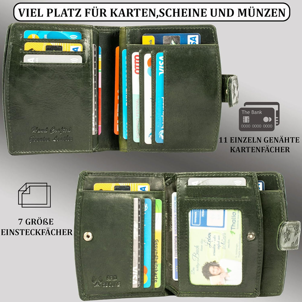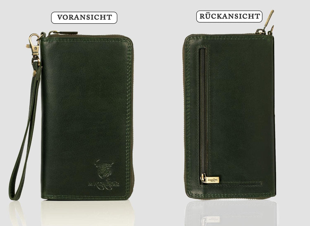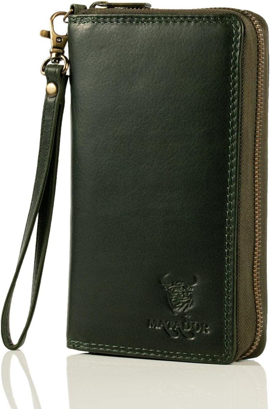 Matador Damen-Geldbeutel Echt Leder Langbörse Grün viele kartenfäecher TüV Geprüfter RFID/NFC Schutz