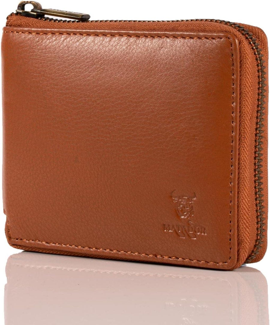 MATADOR Damen Herren Leder Geldbeutel Reissverschluss Portmonai Geldbörse RFID Hell Braun, Hell Brau