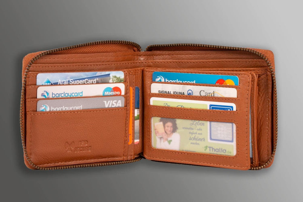 MATADOR Damen Geldbörse aus Echt Leder mit TÜV Geprüfter RFID/NFC Schutz Portemonnaie in braunem Ant