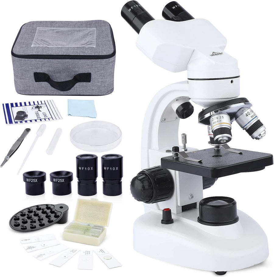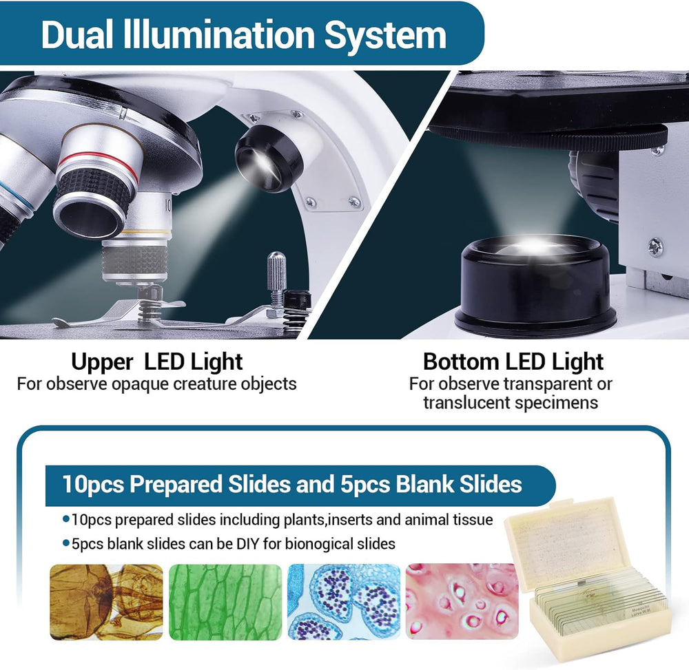 40X-1000X Binokular Mikroskop für Erwachsene Kinder, Compound Mikroskop mit Dual LED Beleuchtung mit
