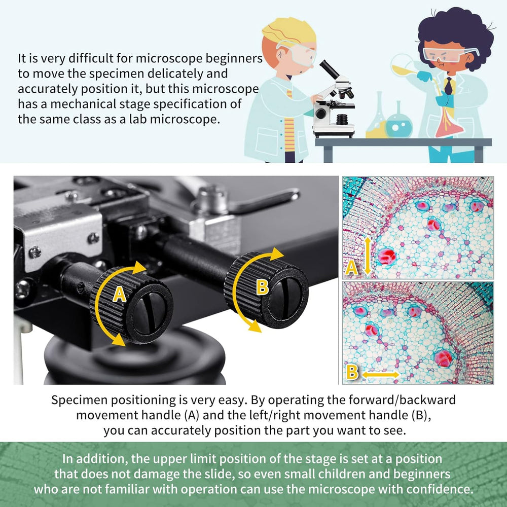 Mikroskop für Kinder und Erwachsene Geeignet - Durchlicht- und Auflicht-Mikroskop - mit Kreuztisch z