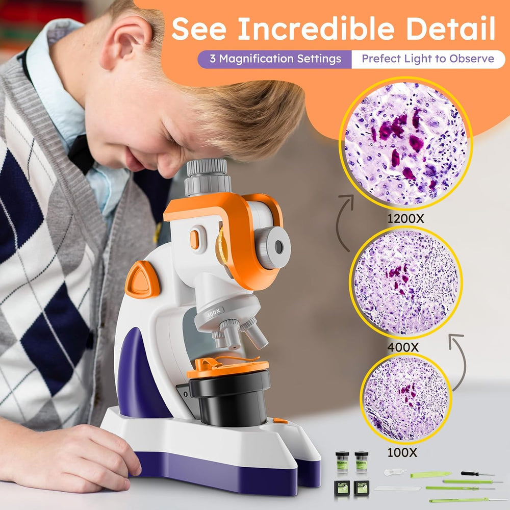 MAXLAPTER Mikroskop für Kinder, 100X-1200X Kinder Mikroskop Kit mit Projektor, Mikroskop Dias Set, L