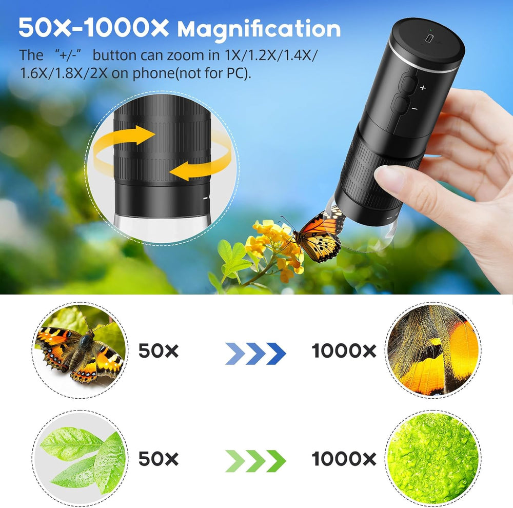 MAXLAPTER WiFi Digital Mikroskop, 50X-1000X Drahtloses Digital Handmikroskop für Erwachsene und Kind