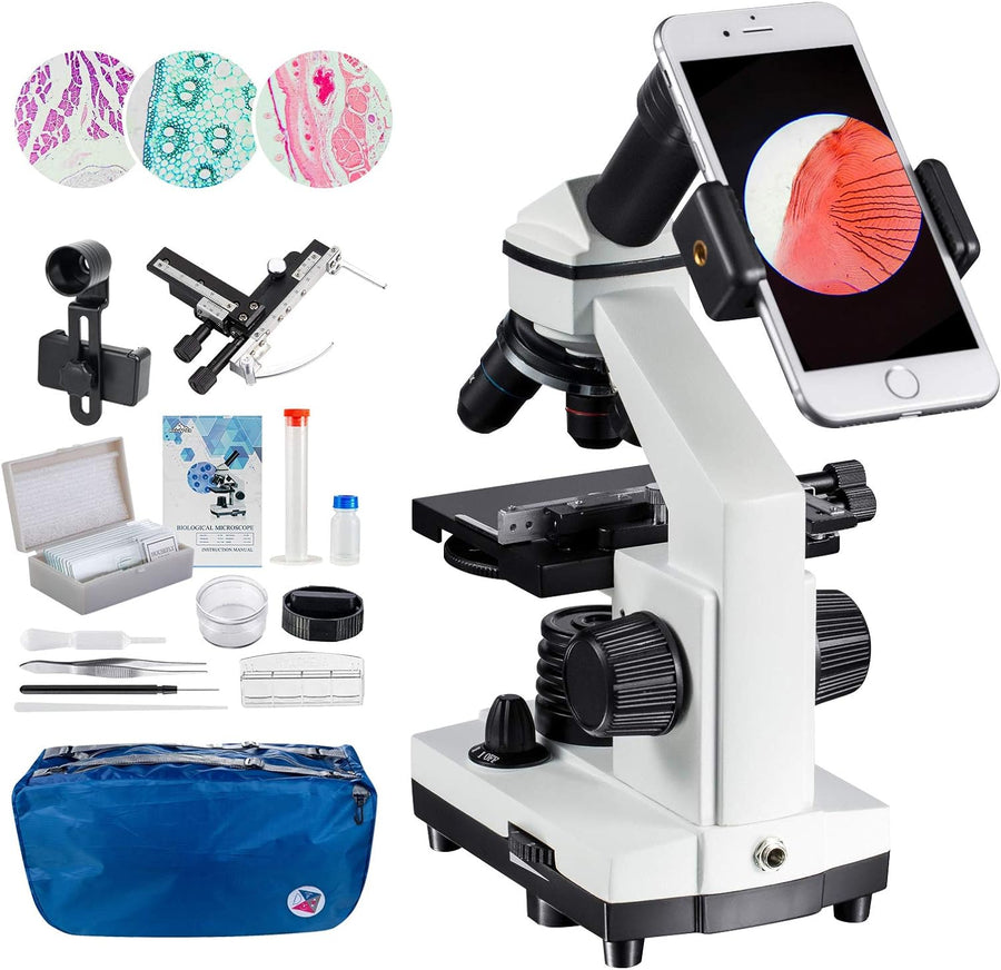 MAXLAPTER 2000x Mikroskopen Bewegliches Lineal Mikroskopen Labor LED mit vorbereiteten und leeren Ob