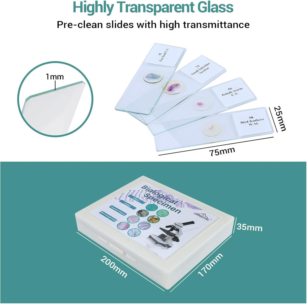 100P Mikroskop Objektträger mit biologischen Proben, Insekten Pflanzen menschliche Zelle für Labor B