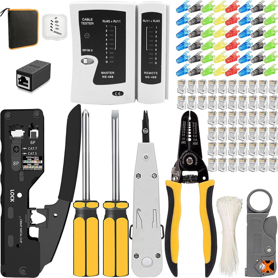 MAYLINEE Netzwerk werkzeug Set Crimpzange RJ45 Cat5 Cat6, Kabel tester Reparatur werkzeuge, Abisolie