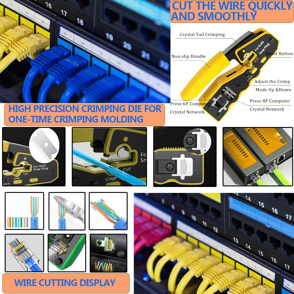 MAYLINEE Crimpstecker Set RJ45 Netzwerk Werkzeug Set Crimpzange werkzeugsatz, Patchkabel Wartung LAN