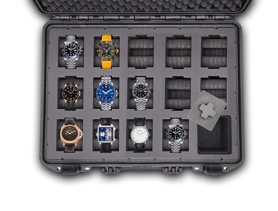 MC-CASES ® Uhrenkoffer Transportkoffer für bis zu 14 Uhren - Reisekoffer - Wasserdicht - Abschliessb