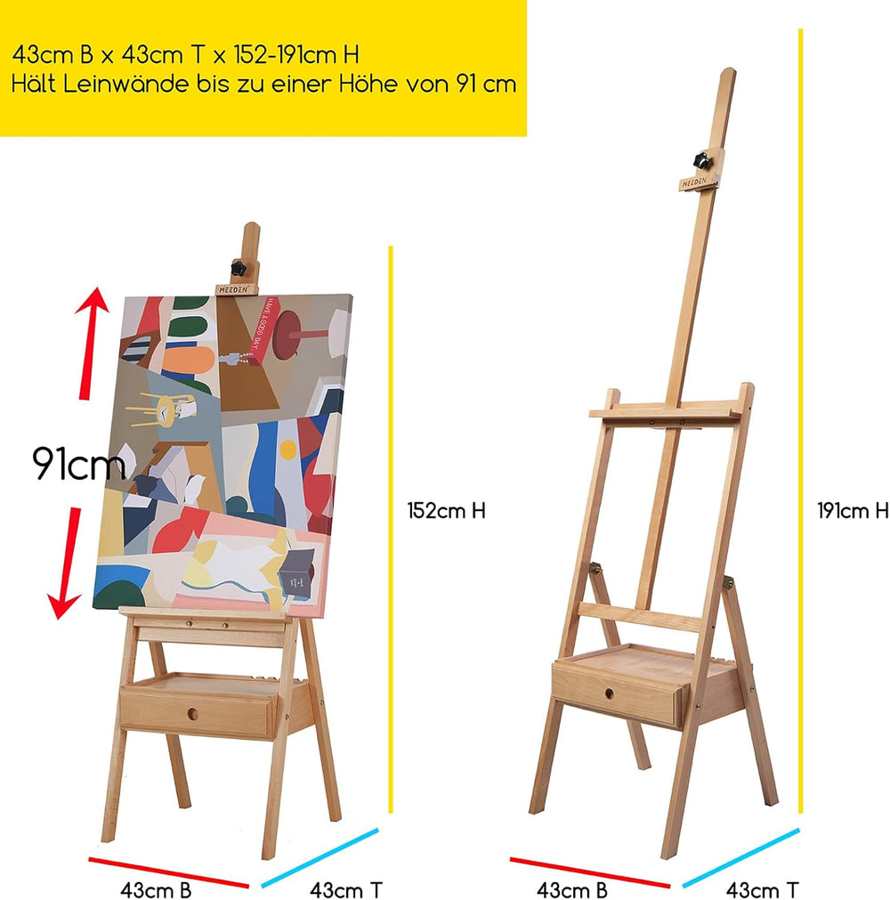 MEEDEN Staffelei Holz Gross mit Aufbewahrungsschublade, Verstellbarer Leinwand Ständer aus deutsche