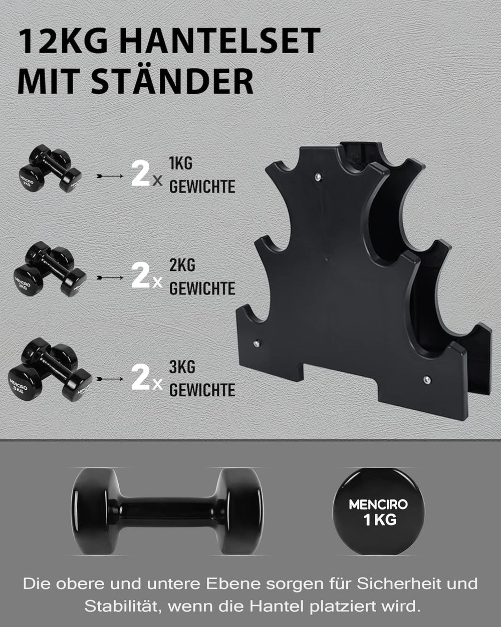 MENCIRO Hanteln 2er Set für Männer und Frauen, 1KG - 5KG Kurzhanteln Gewichte für Zuhause Fitnessstu