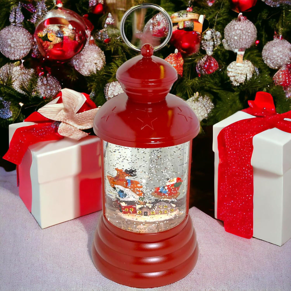 MIJOMA Weihnachtliche LED Laterne Schneekugel aus Glas, Zauberhafter Schneewirbeleffekt, Warmweisses