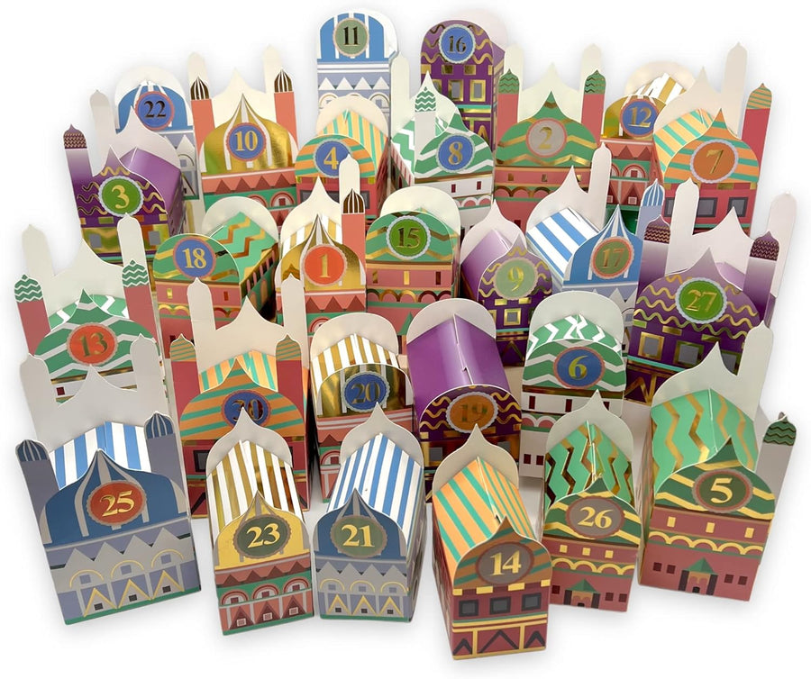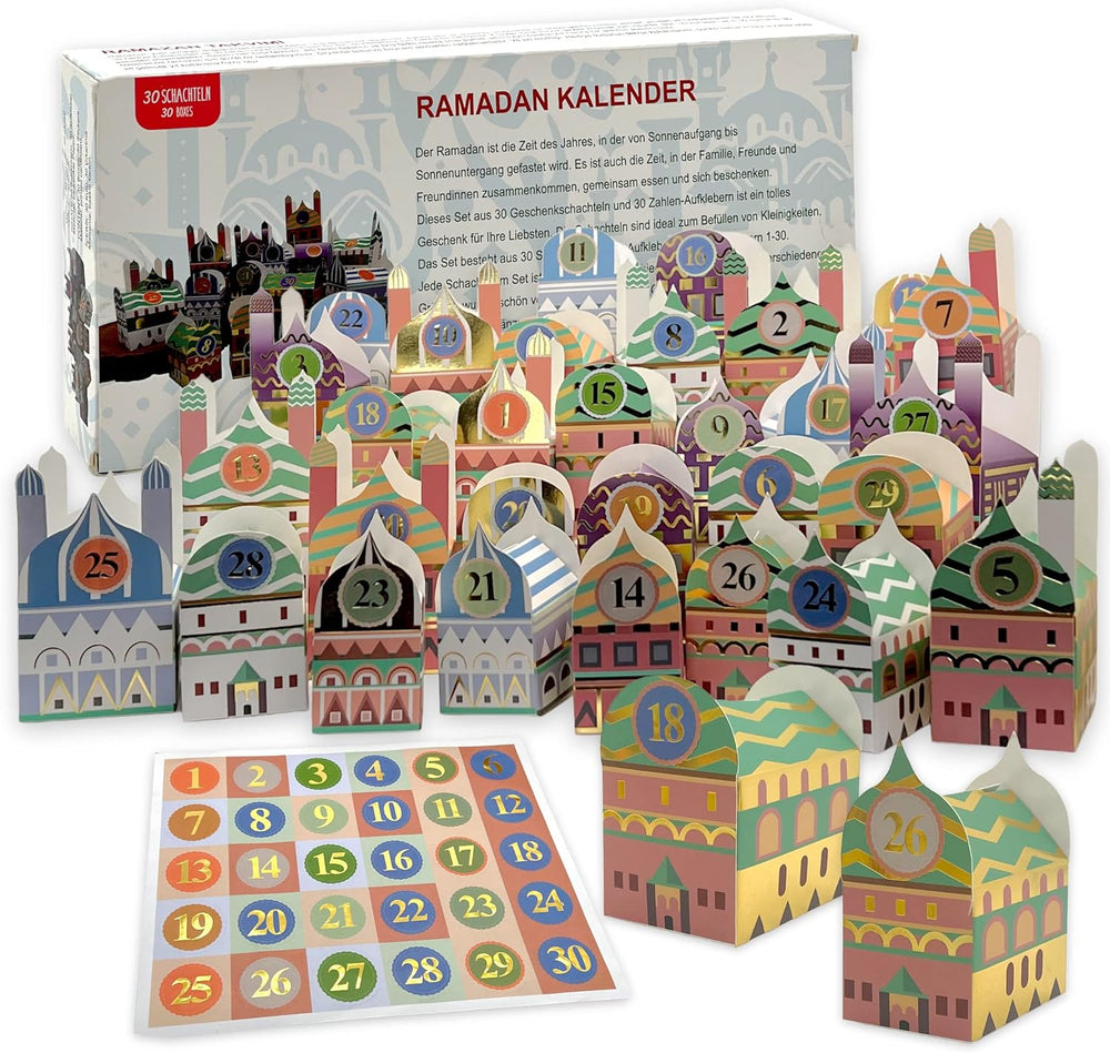 Ramadankalender zum Befüllen - 30 bunte Geschenkschachteln zum Basteln - 30 Faltschachteln mit Goldd