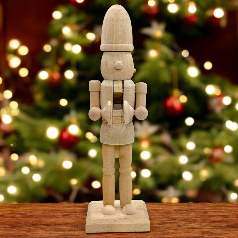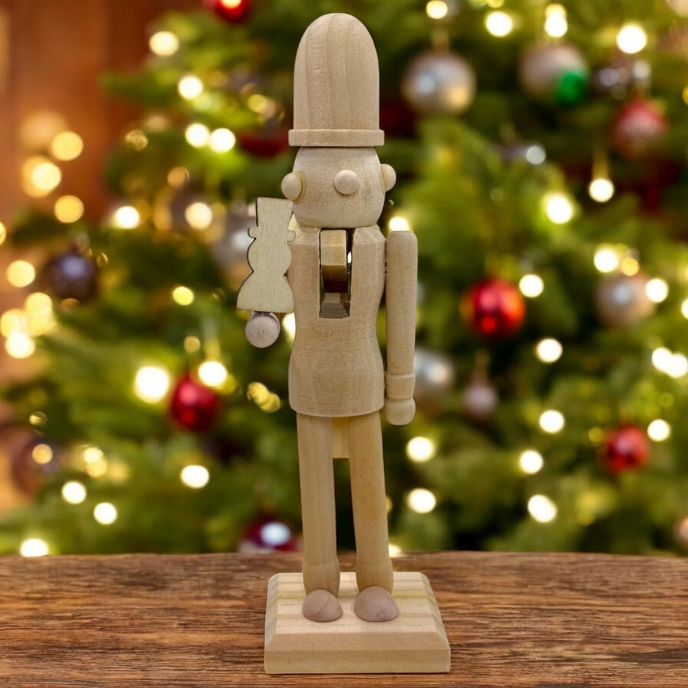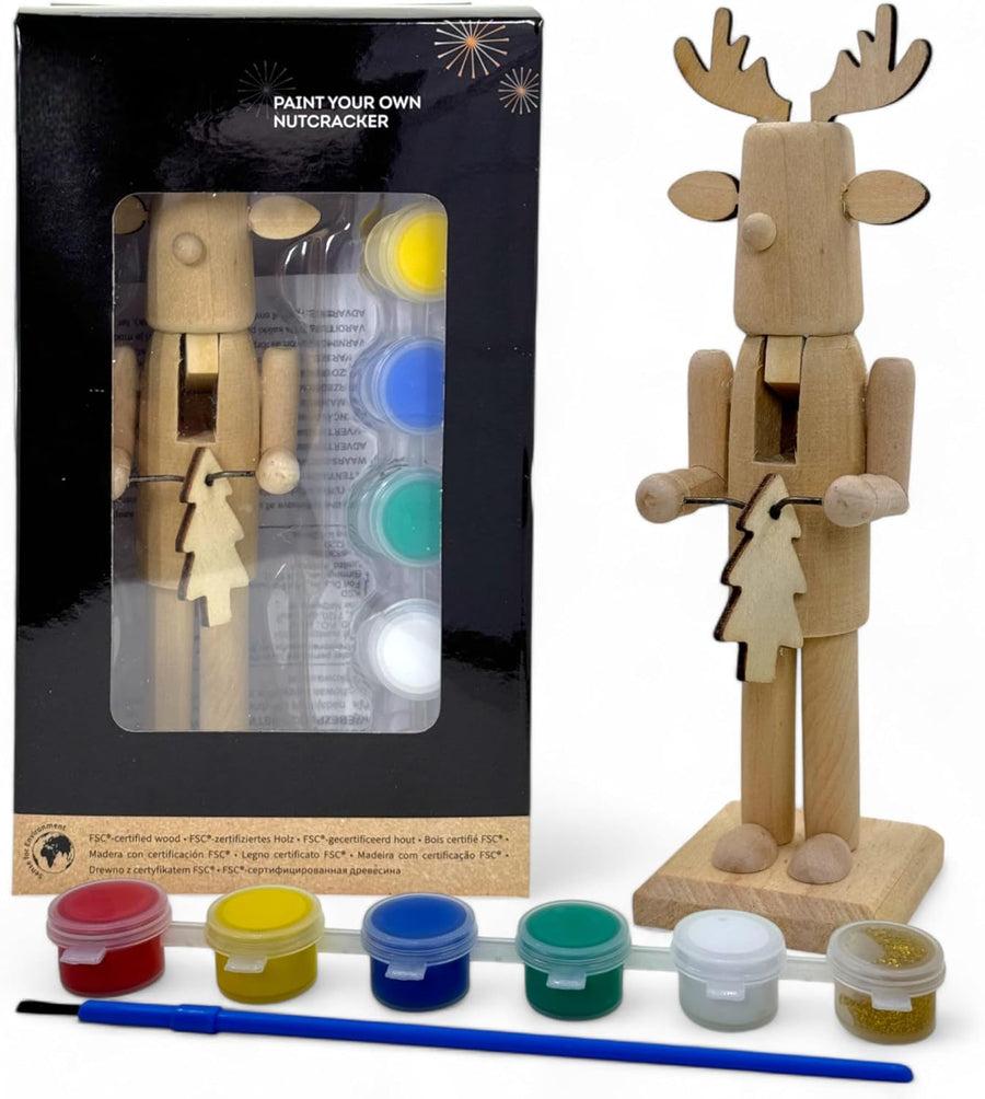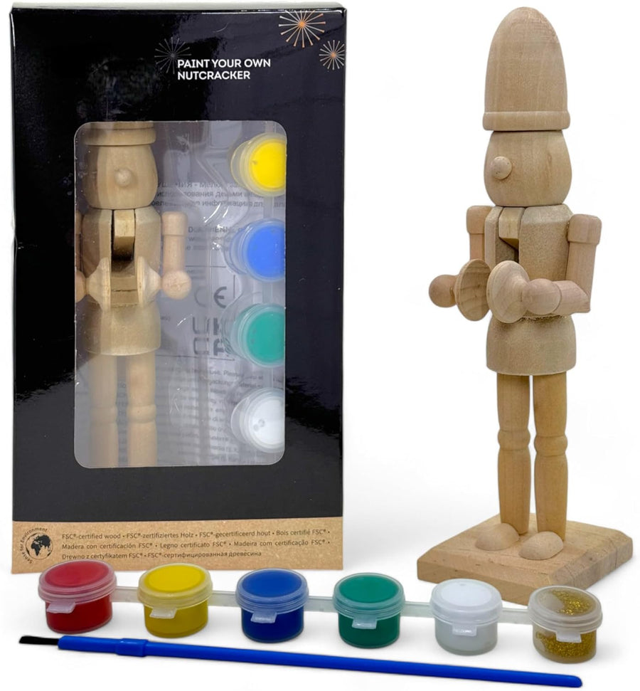 MIJOMA DIY Nussknacker Set aus Holz zum Selbstgestalten & Bemalen mit 6 Farben & Pinsel, 16cm hoch,