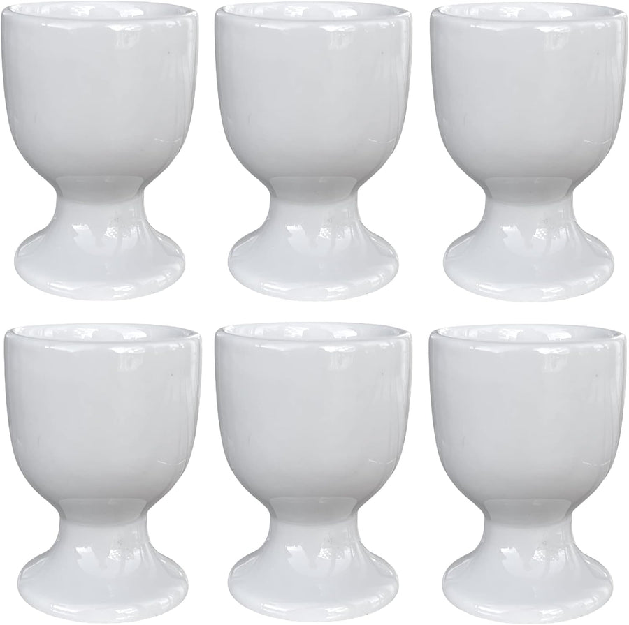 MIJOMA 6 Stück Eierbecher Eierhalter Eierständer weiss mit farbigem Dekor, aus Porzellan je 6.5 x 5