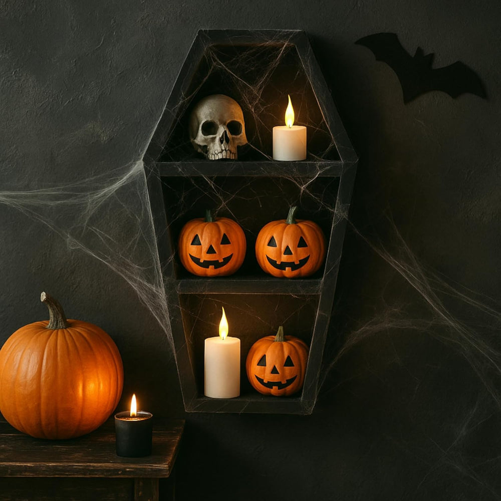Sargregal aus Holz, Gothic-Dekoration, Hexenregal, Oddities Hängeregal, Sarg Make-up Regal. Gothic-D