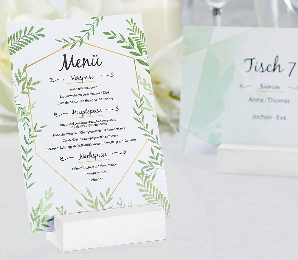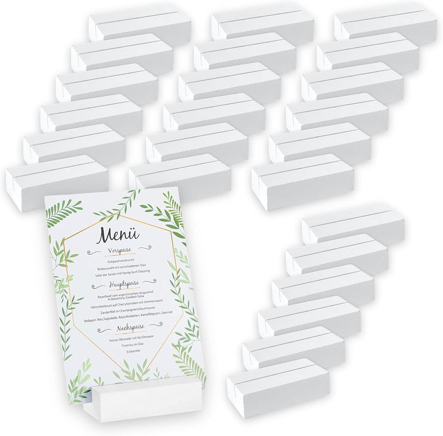 MIJOMA 24 Stück Set Kartenhalter Tischkartenhalter Menükartenhalter aus Holz weiss - ideal für die H