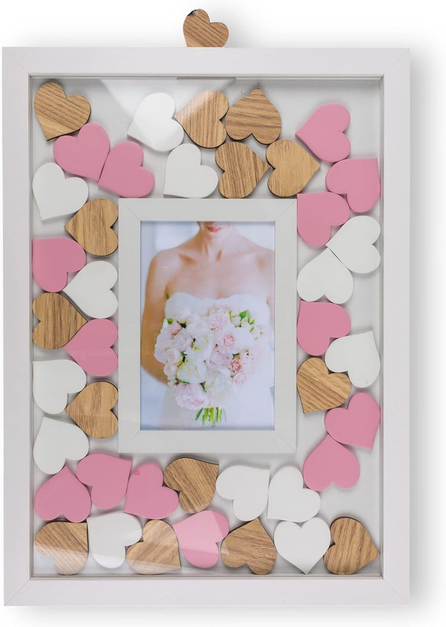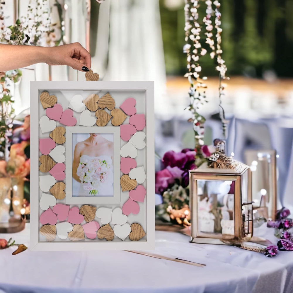 MIJOMA Gästebuch mit Holzrahmen & 42 beschriftbaren Holzherzen in 3 Farben - ca. 38 x 28 cm - inklus
