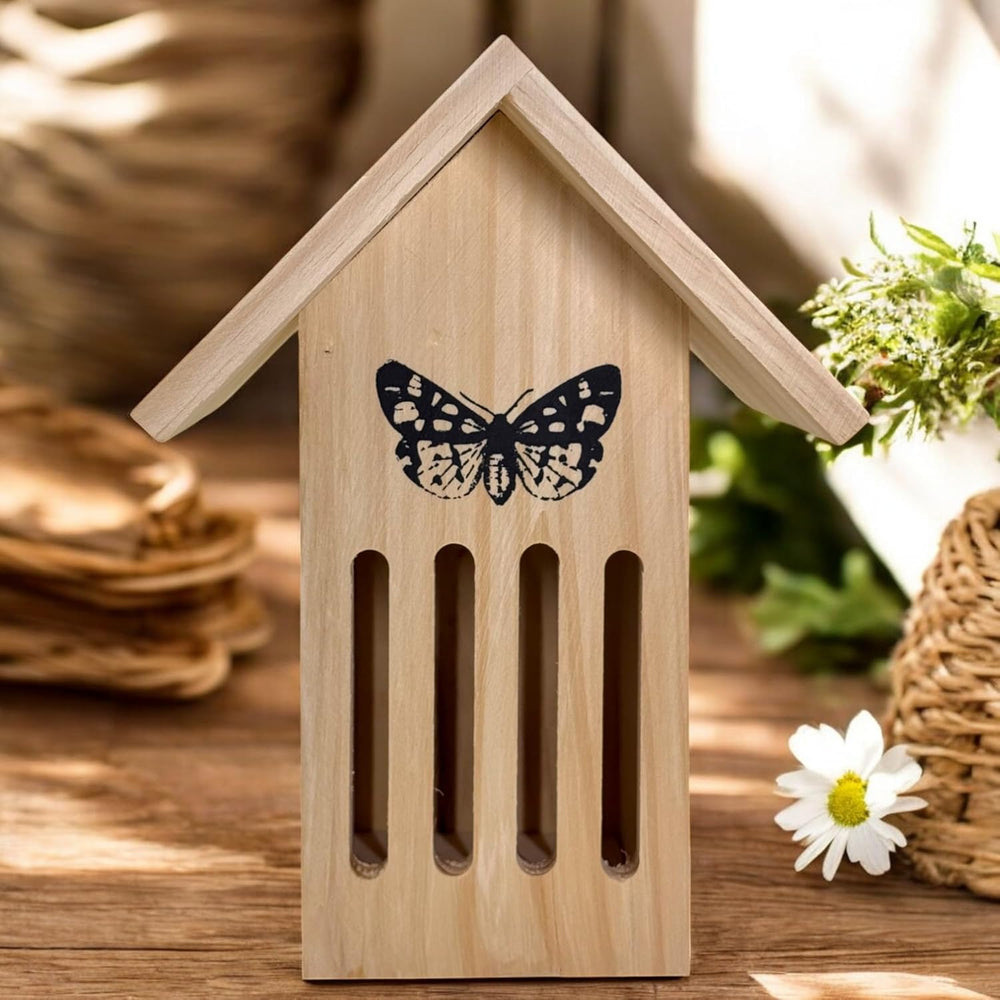 MIJOMA Schmetterlingshaus aus Holz – Wetterfestes Insektenhotel für Schmetterlinge – Schutz vor Fres