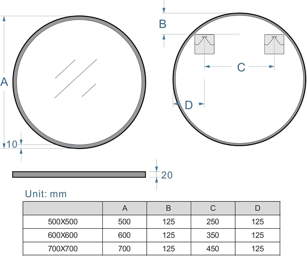 MIQU Badezimmerspiegel 70 x 70 cm Badspiegel ohne Beleuchtung Rund Spiegel Schwarz Metallrahmen Wand