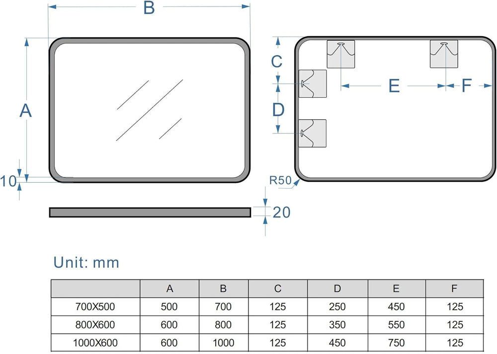MIQU LED Badspiegel mit Beleuchtung 60x50 cm Badezimmerspiegel, Bad Gross Spiegel mit Touch Dimmbar