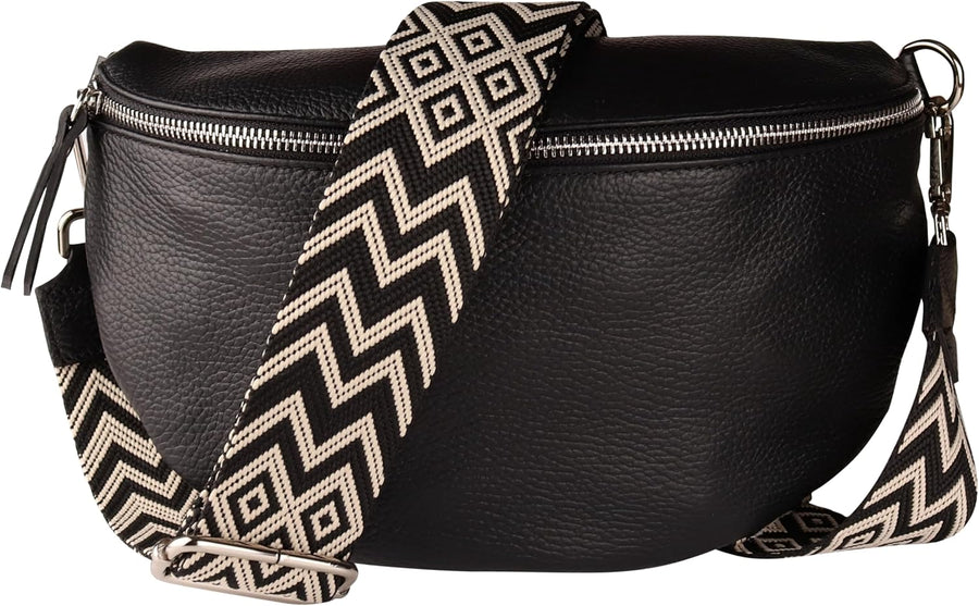 MIRROSI® Bauchtasche Damen, Echtleder, Made in Italy, Umhängetasche, Brusttasche, Crossbody Bag (1 T