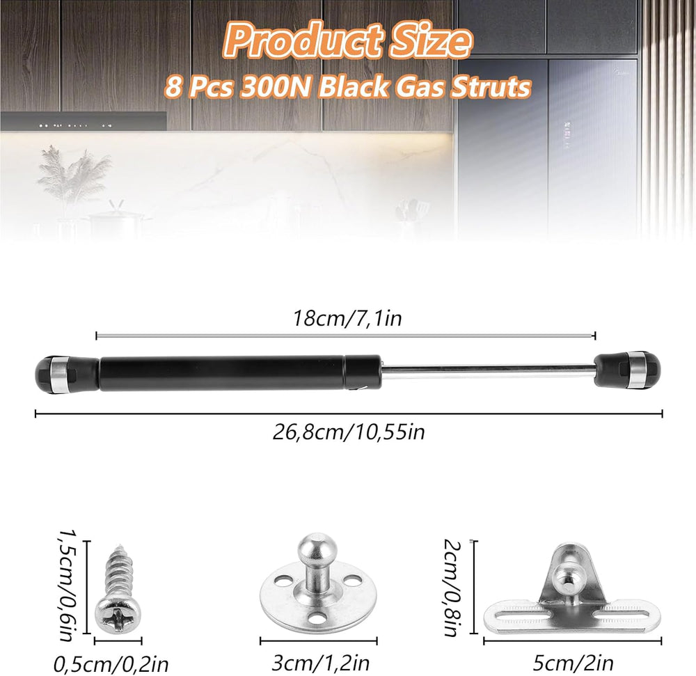 MIVIDE 8 Stück 300N Hydraulic Gasdruckfeder, Schwarz Gasdruckdämpfer, Gas Strut Lift Schrank, Hydrau
