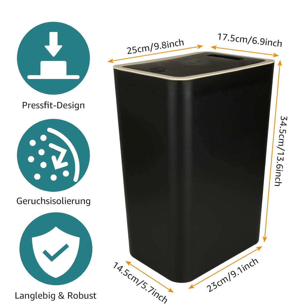 MIVIDE 12L Mülleimer Schmal, Mülleimer mit Deckel Schwarz, Mülleimers mit Pop-Up Deckel für Büro, Kü