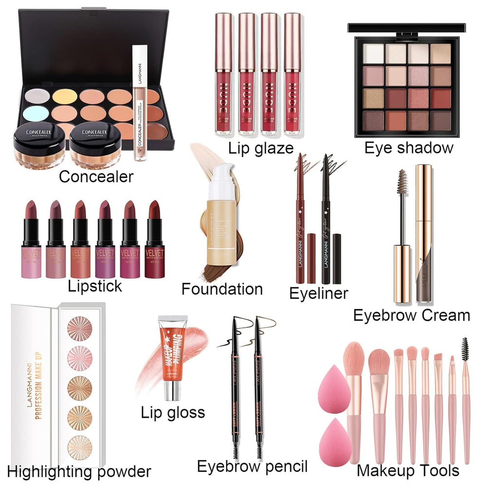 Professionelles Make-up Sets, MKNZOME 24St Schminke Set Damen mit Schminktasche Schminkset Makeup Pa