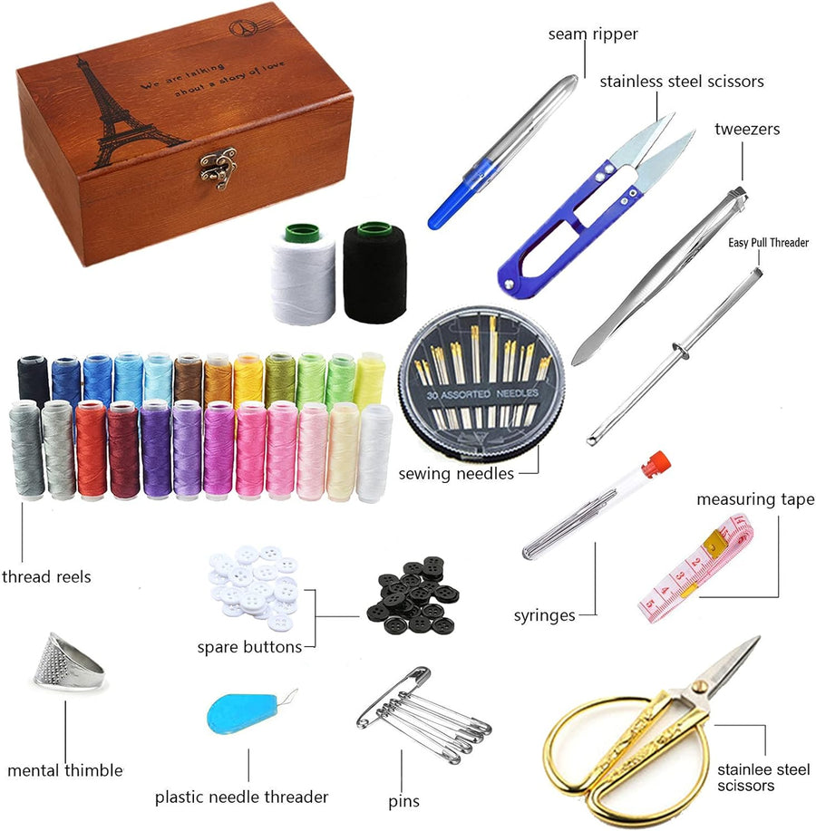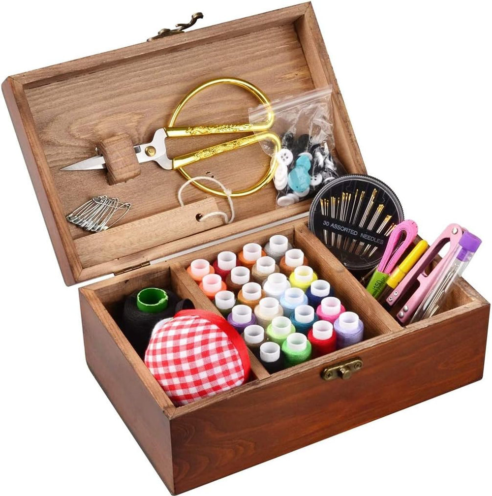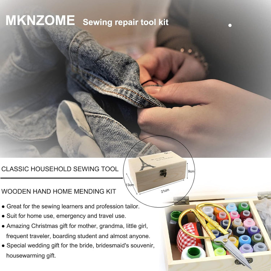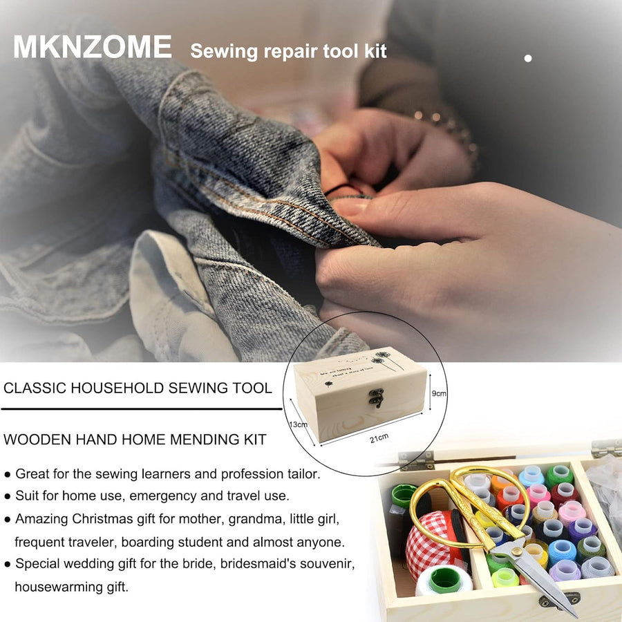 Nähkorb aus Holz, MKNZOME Nähkasten mit Über 110 Stk Nähzubehör Nähsets Holz Nähkörbe Haushalt Nähze