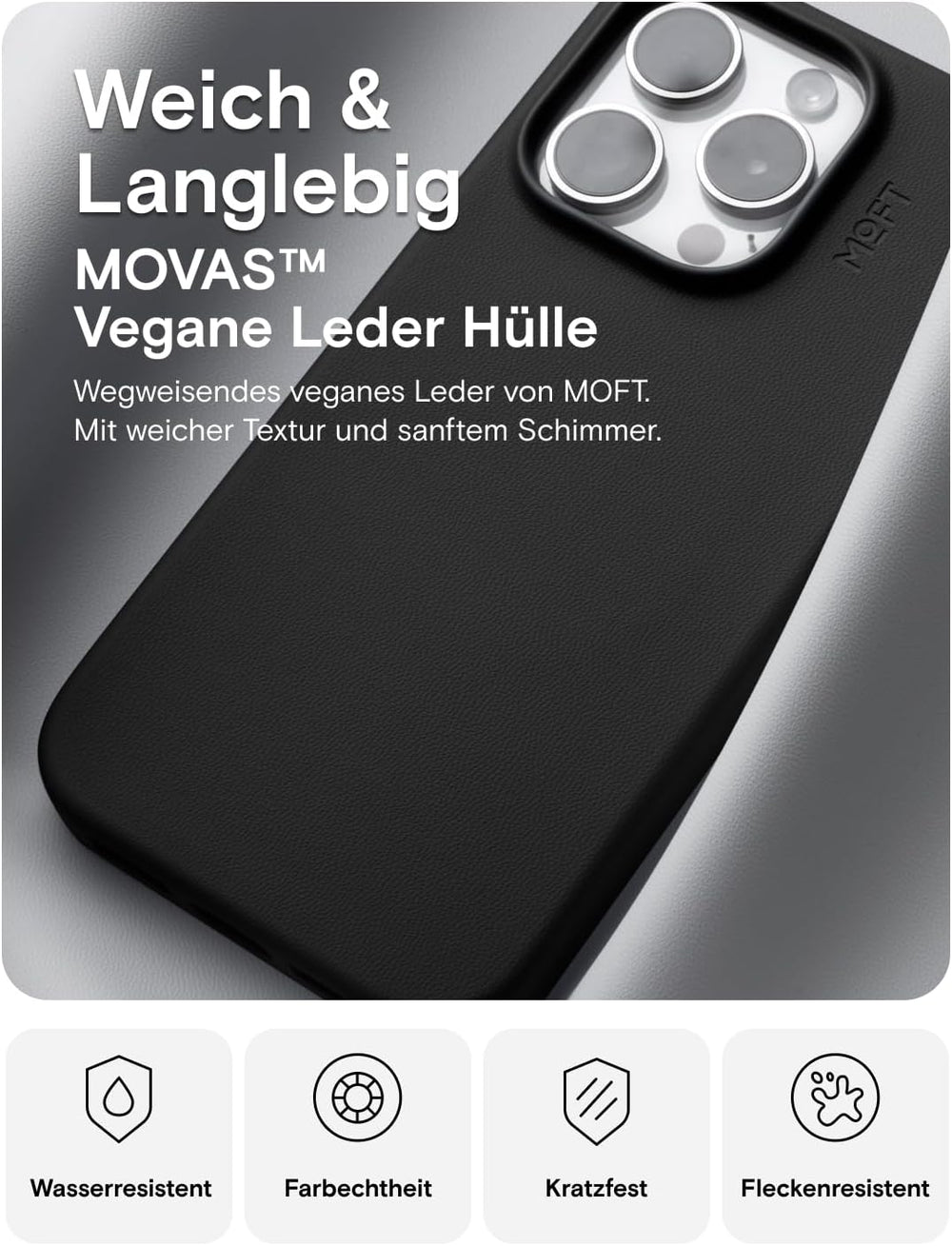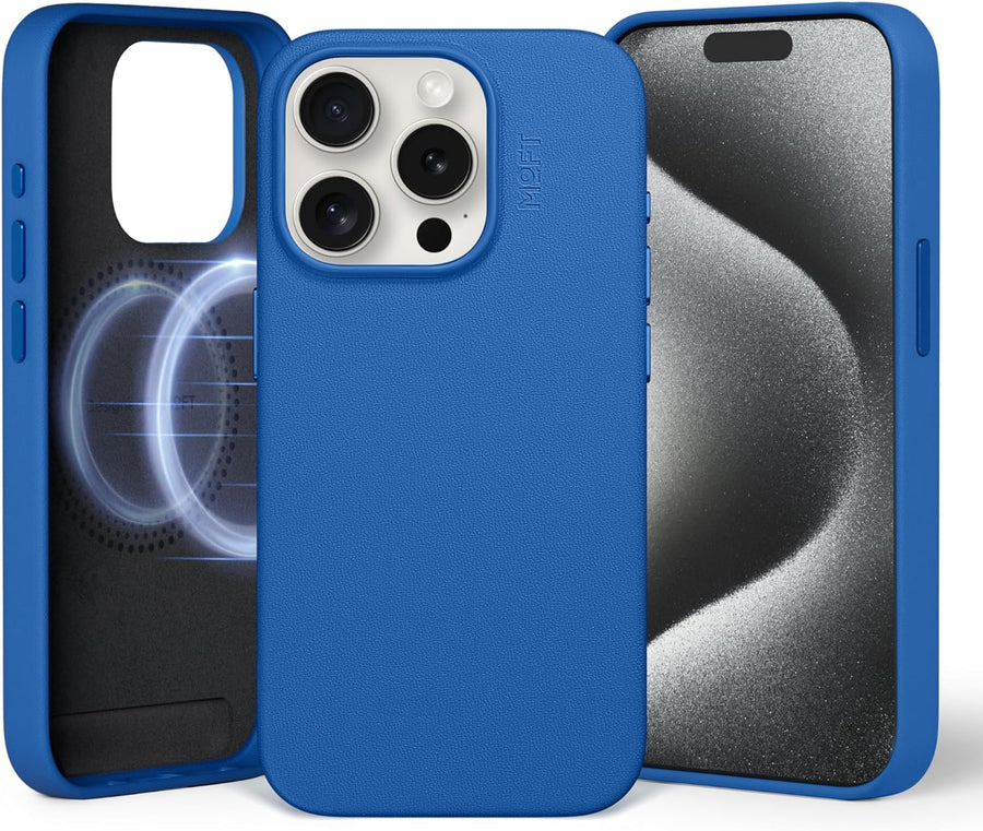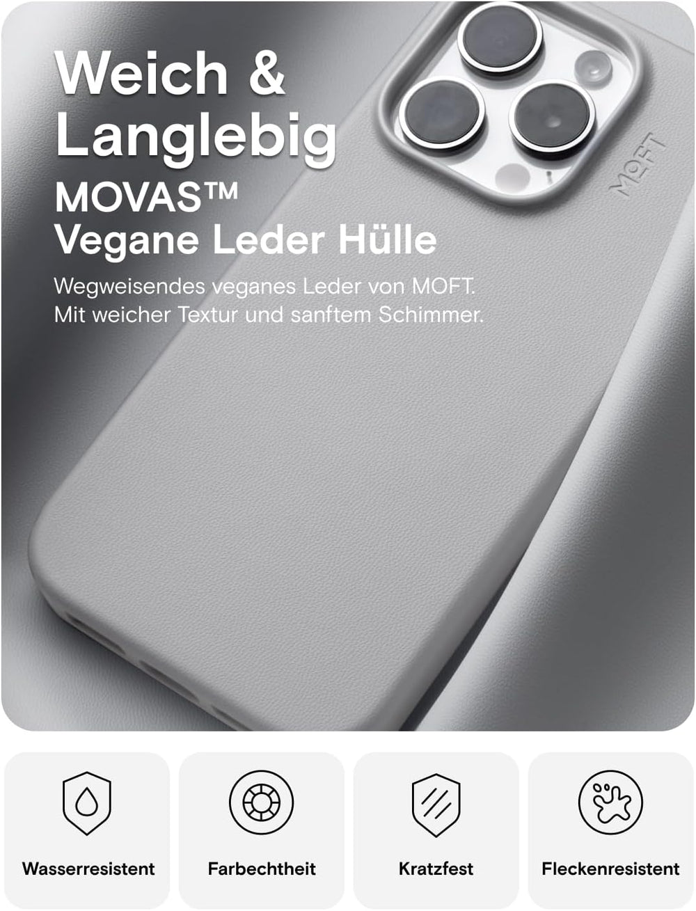 MOFT Magnetische Hülle für iPhone 15 Pro Kompatibel mit MagSafe, MOVAS Vegane Lederhülle, Weiches Be