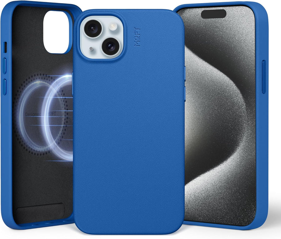 MOFT Magnetische Hülle für iPhone 15 Plus Kompatibel mit MagSafe, MOVAS Vegane Lederhülle, Weiches B