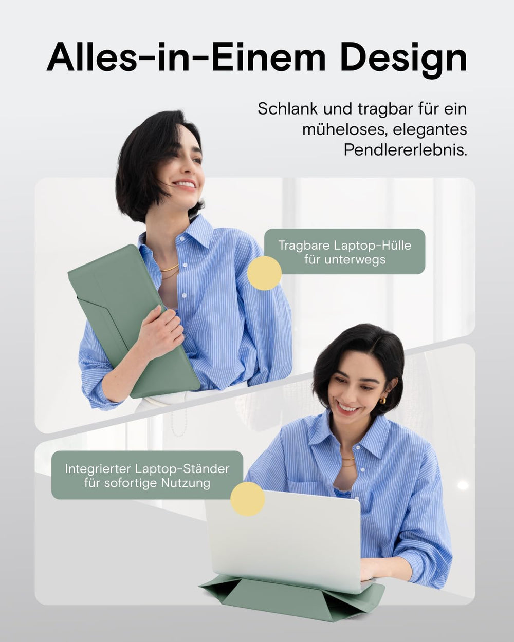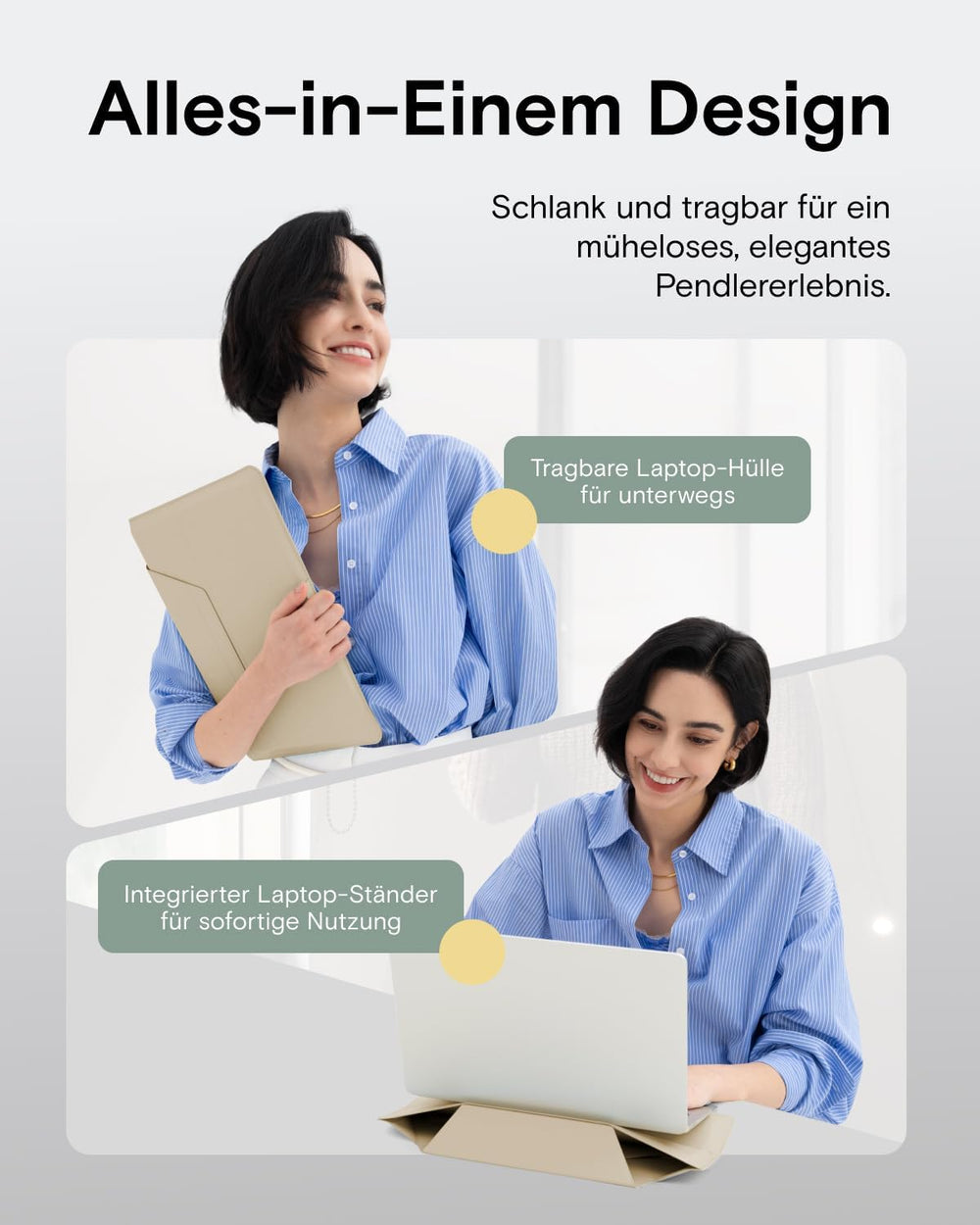 MOFT Laptoptasche Hülle & Laptop Ständer für 15-16 Zoll Laptop, Vegan Leder Laptoptasche mit Erweite