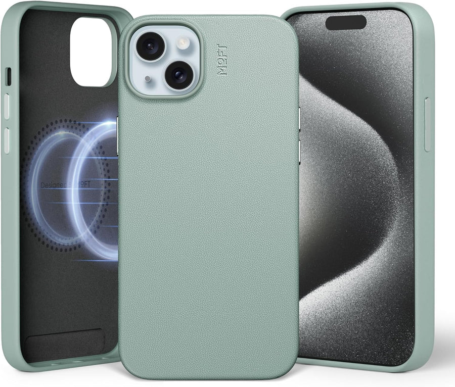 MOFT Magnetische Hülle für iPhone 15 Kompatibel mit MagSafe, MOVAS Vegane Lederhülle, Weiches Berühr