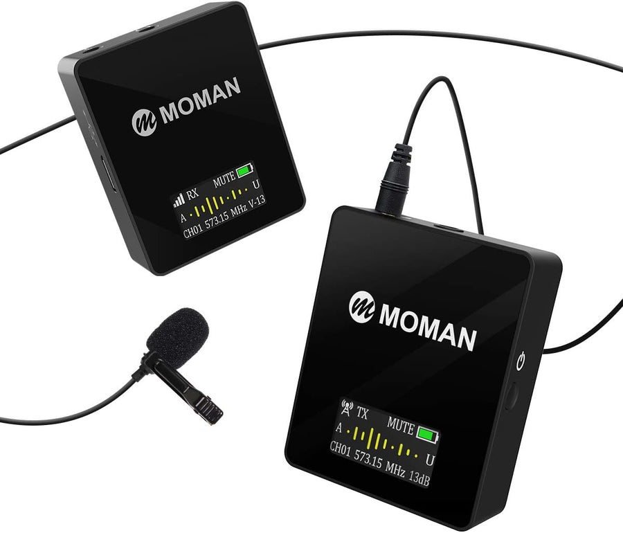 Moman Lavalier Funkmikrofon, Kabellos Ansteckmikrofon System, Wireless Microphone Mics, UHF 36-Kanäl