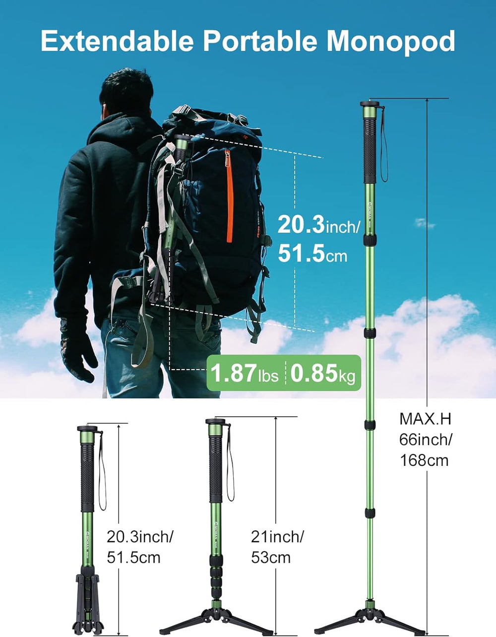 Einbeinstativ, Moman MA66 Kamera Monopod mit Standspinne Reisestativ Kohlefaser Kompakter Tragbarer