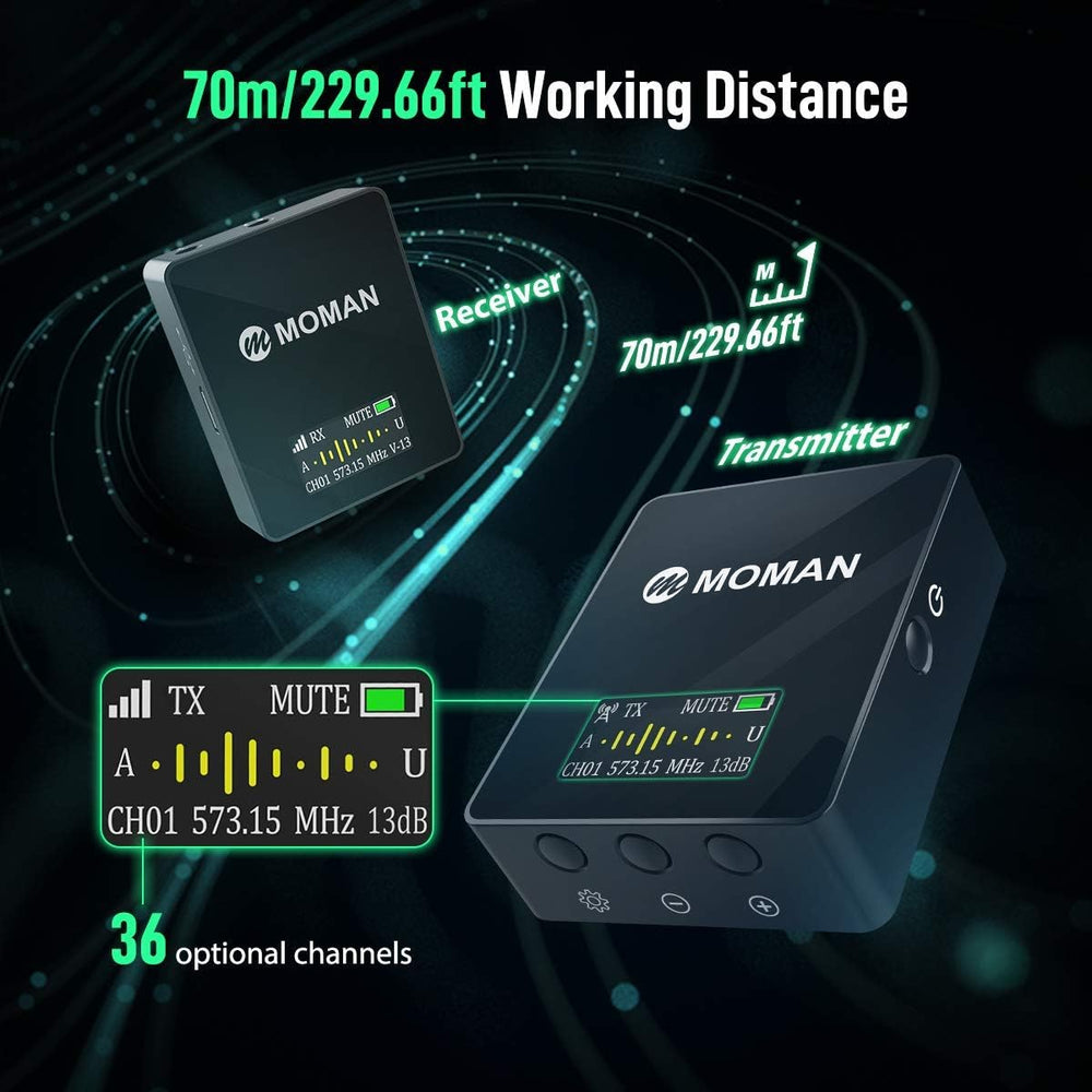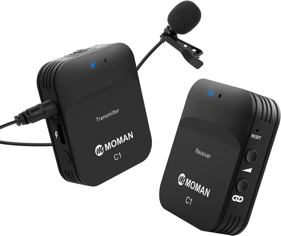 Moman C1 Lavalier Funkmikrofon, 2.4Ghx Kabellos Ansteckmikrofon System Wireless Microphone Mics, 70m