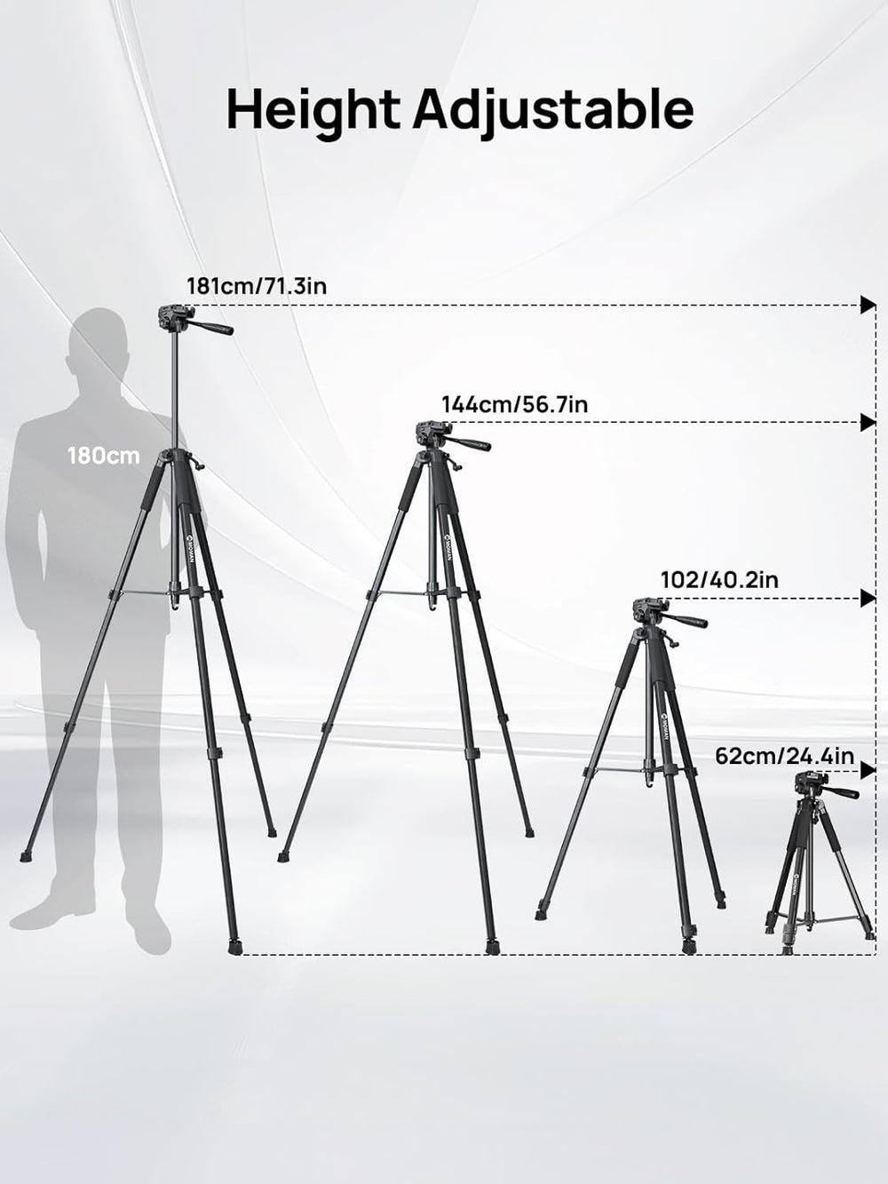 Moman Stativ Kamera, TP71T Aluminium Dreibeinstative mit Kopf 180cm Höhe DSLR Fotostativ Maximale Tr