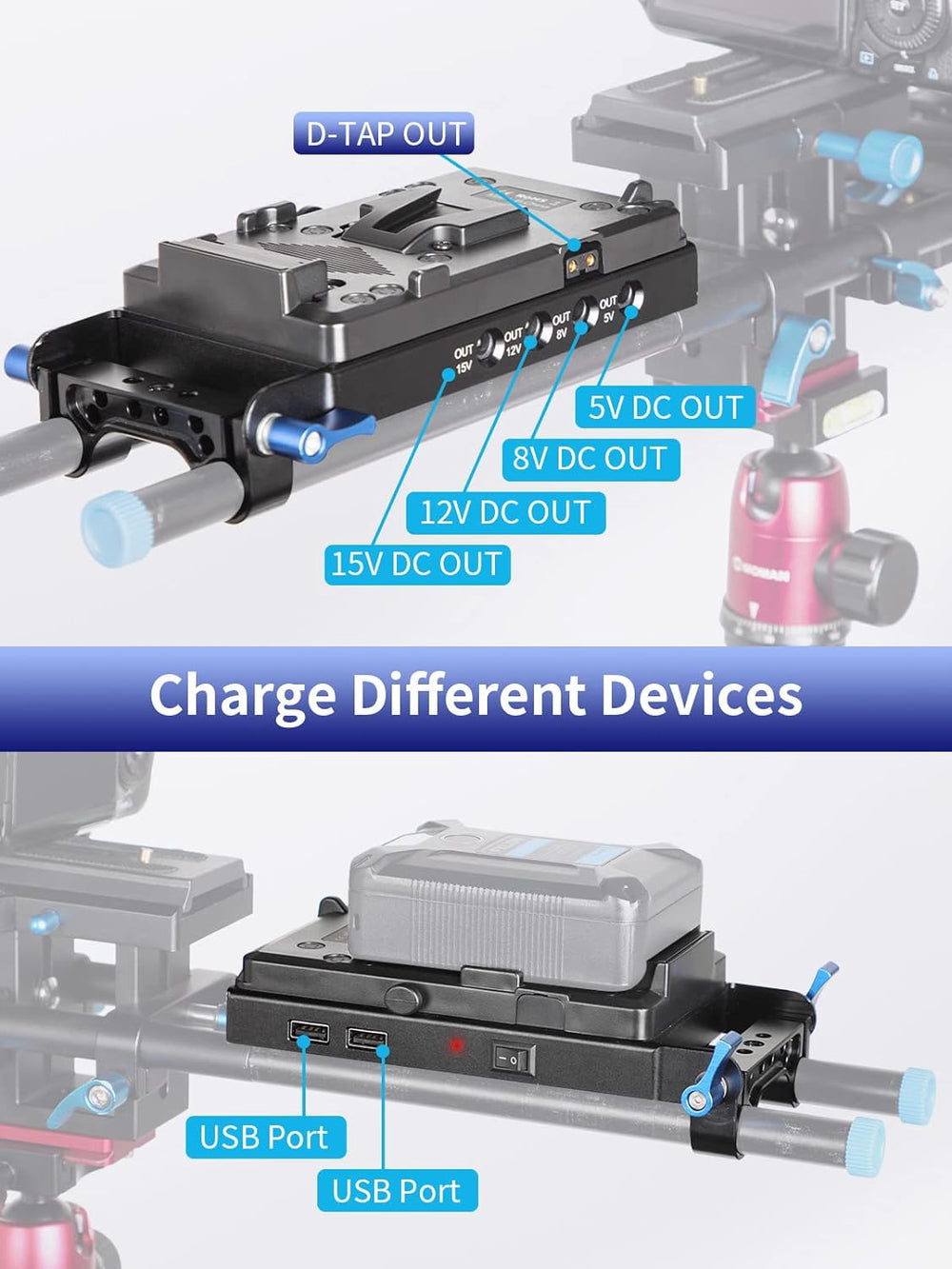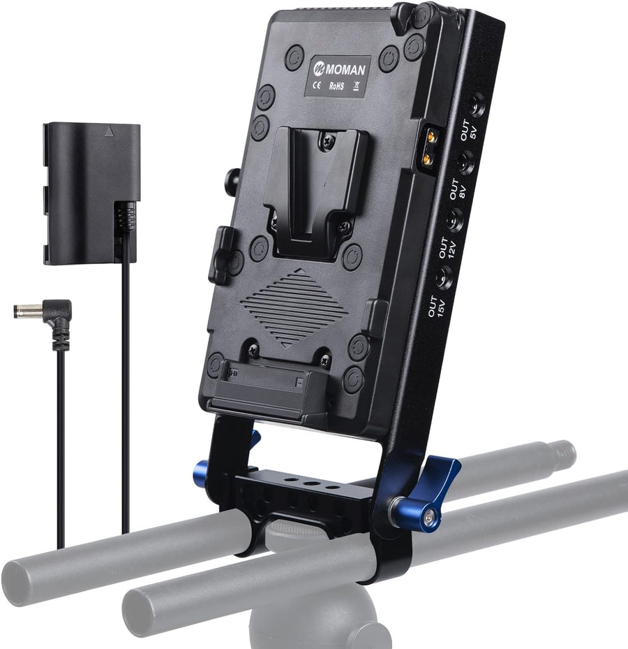 Moman V-Mount Battery Plate VLock Adapterplatte, Netzteil-Splitter mit 15 mm Stangenklemme für BMPCC