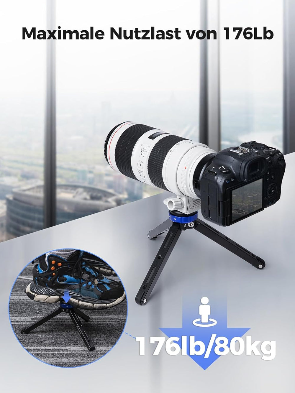 Moman Tischstativ mit Kugelkopf, Mini Kamera Stativ 360° Stativkopf, 1/4 3/8 Schraubbefestigung, CNC