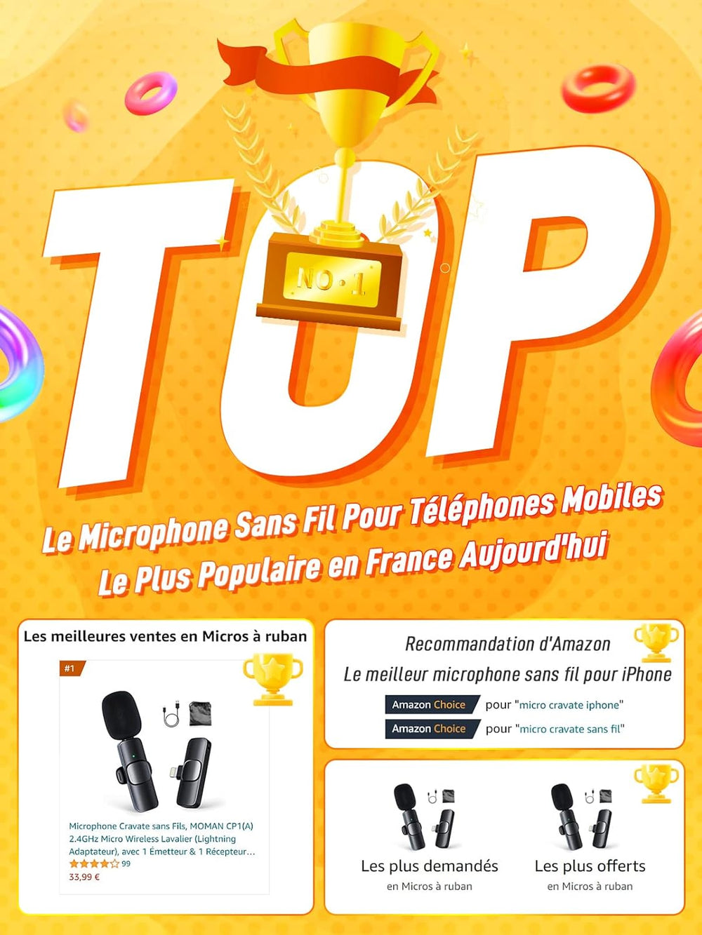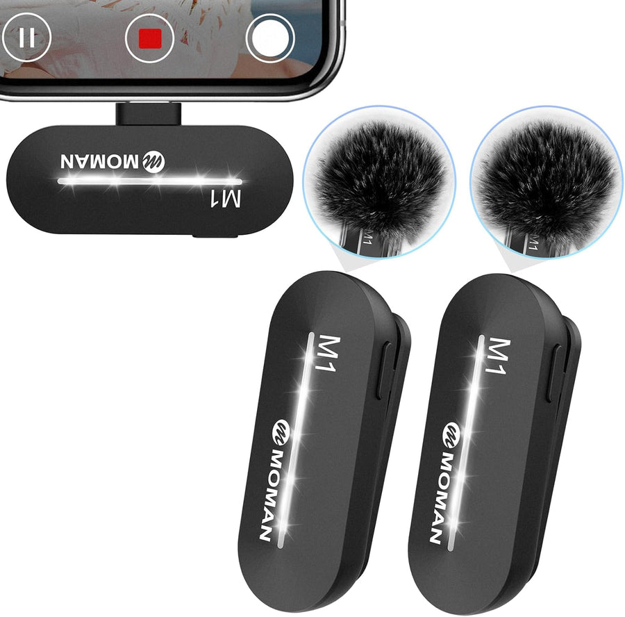 Moman Lavalier-Funkmikrofon-Ansteckmikrofon-Lightning-Kabellos 2.4GHz Auto Noise Canceling Wireless