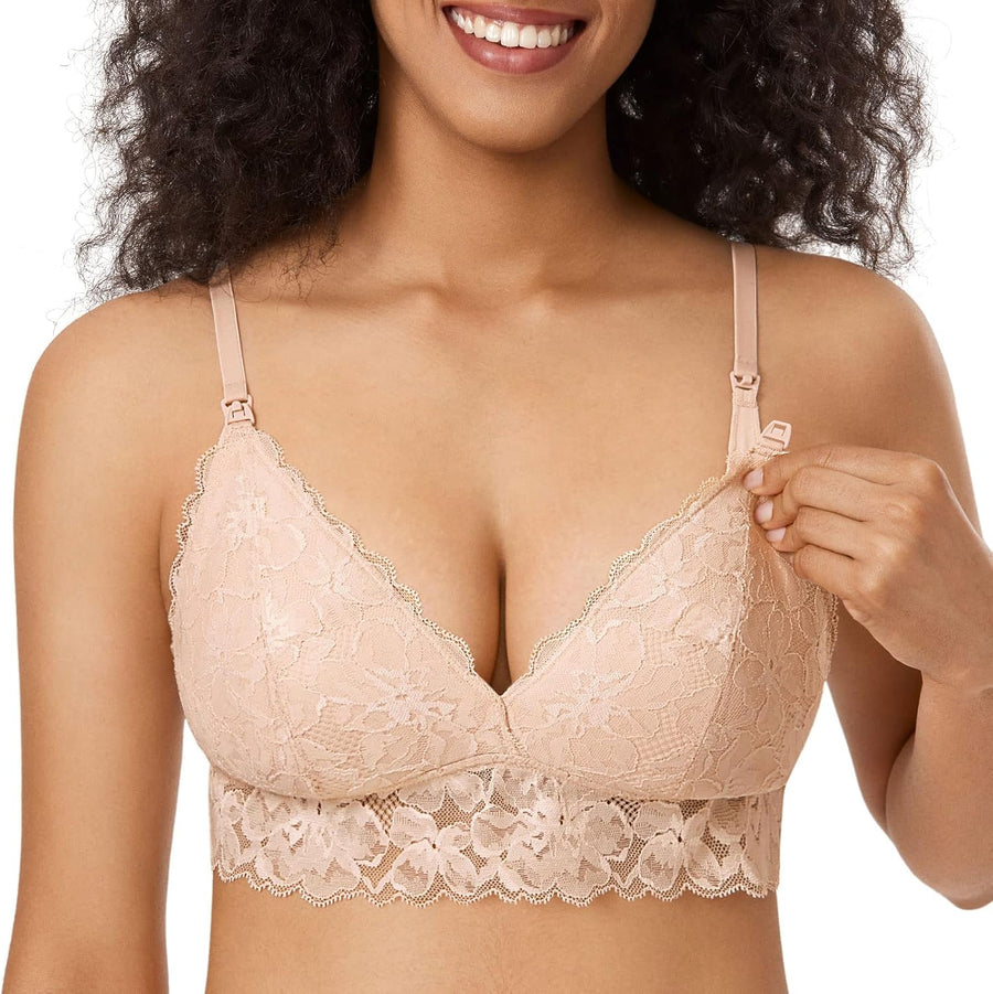 MOMANDA Damen Pump Still BH ohne Bügel Spitzen Schwangerschafts Stillen BHS Mutterschaft Soft Bequem