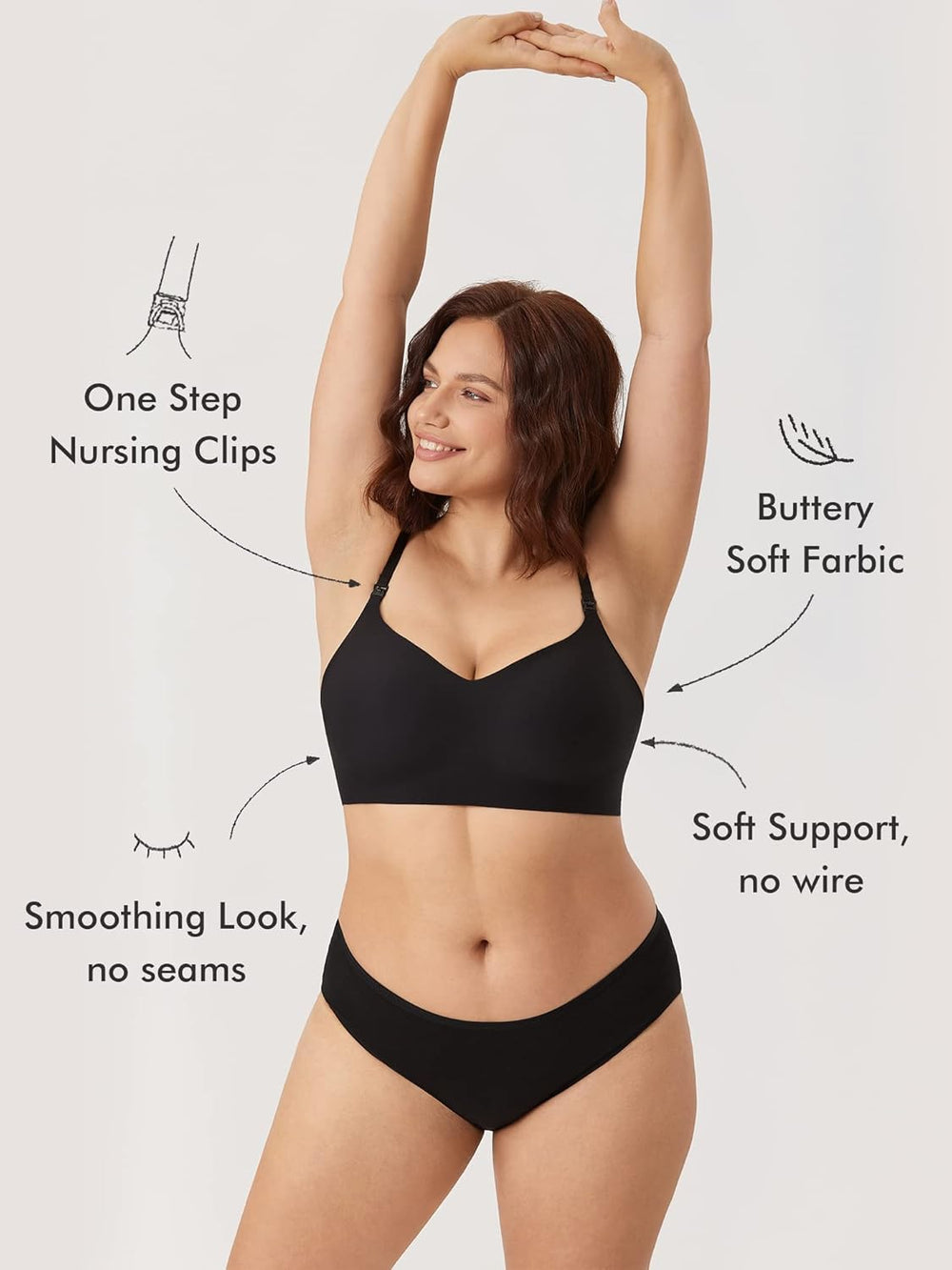 MOMANDA Damen Still BH ohne Bügel Nahtloser Schwangerschaft BHS Soft Grosse Brüste Schlaf BH mit Abn