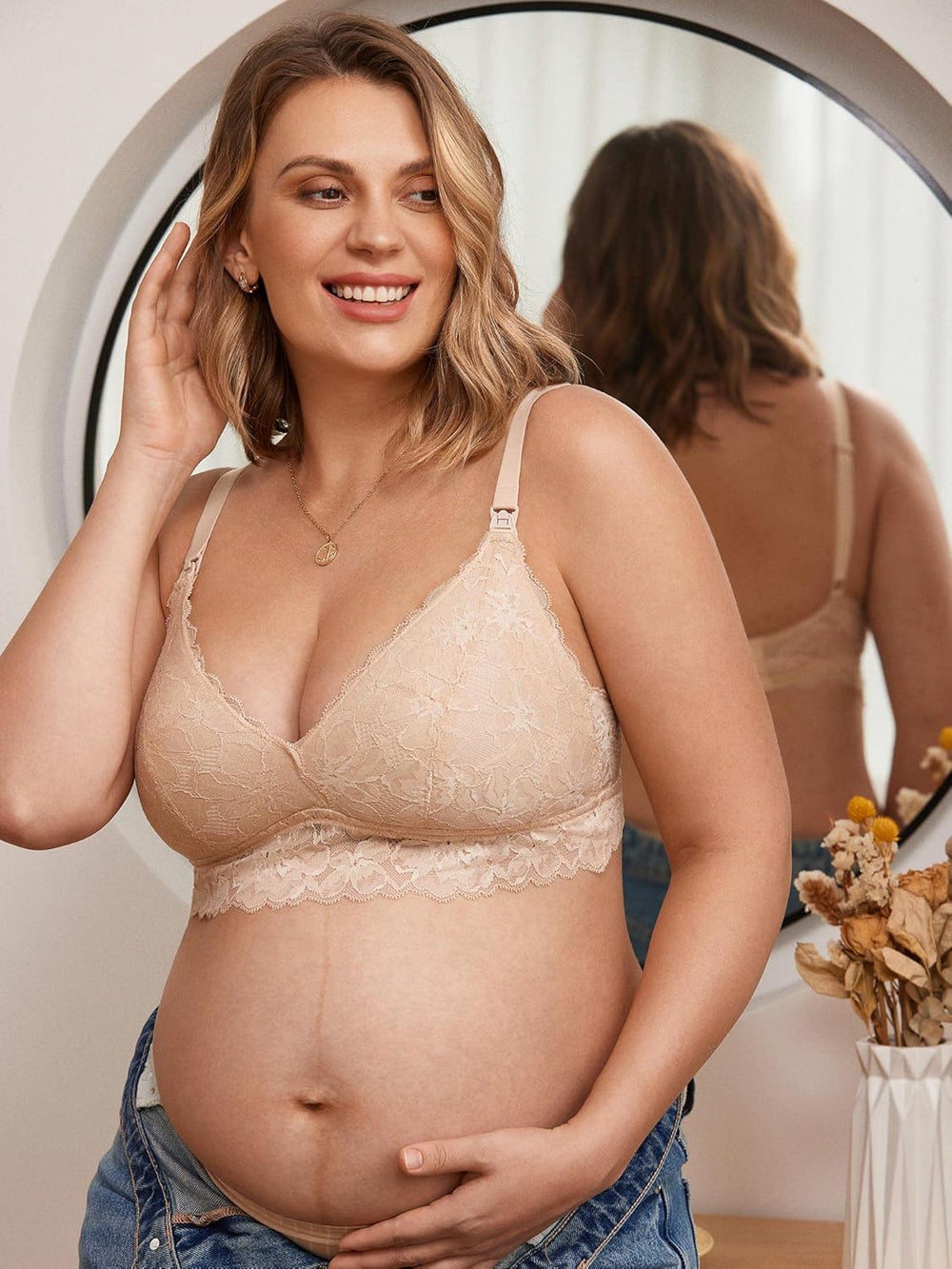 MOMANDA Damen Still BH Grosse Brüste Spitze Mutterschaft Stillen Schwangerschaft BHS, Beige