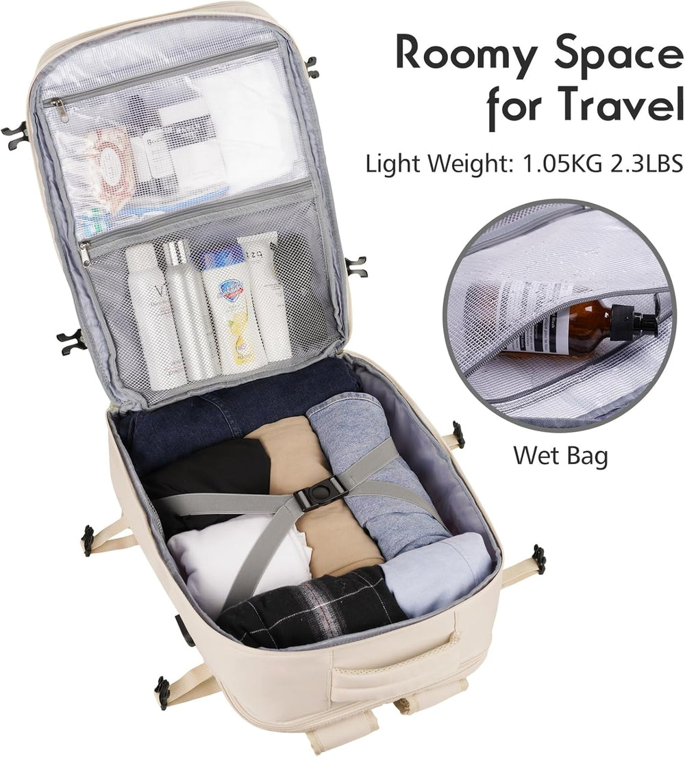 MOMUVO Grosser Reiserucksack für Damen, flugzugelassener Handgepäck-Rucksack, wasserabweisend, Diebs