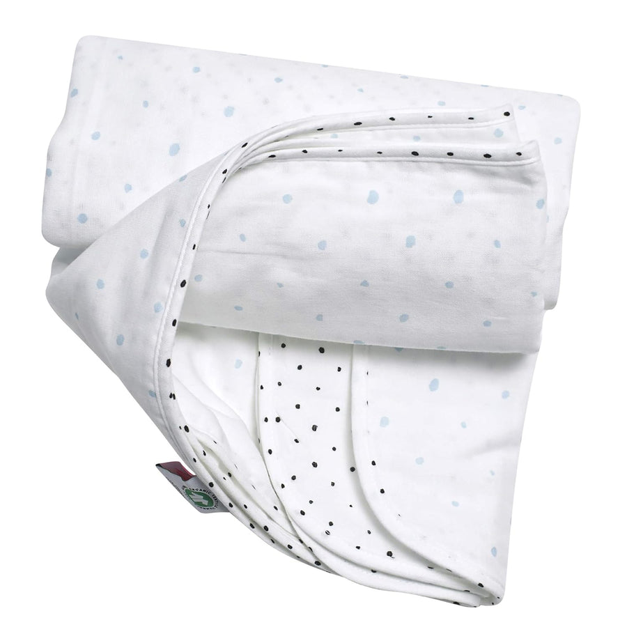 Babydecke GOTS zertifiziert aus BIO-Baumwolle, 2-lagig, 130 x 130 cm - Kleckse blau und schwarz Klec