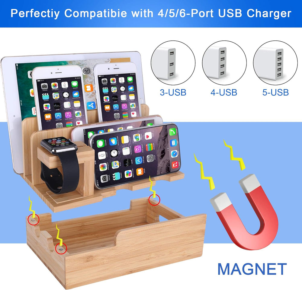 MOZOWO Schreibtisch Organizer Bambus Holz Ladestation Ladestation Ladegerät Halterung Ständer compat