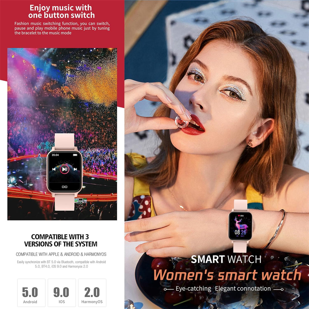 Smartwatch Damen,Fitness Tracker IP68 Wasserdicht Smart Watch mit Aktivitätstracker Schlafmonitor,Sp